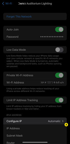 NOTE: If you are connecting multiple devices to the network (more than one iPad, phone, computer, etc,) you must make sure that each device has a unique IP address. i.e., the last set of numbers must be unique for each device. (If your first device is set to10.101.125.101, then you could set additional devices to use IPs10.101.125.102,.103, etc.)Set the Subnet Mask to